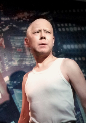 その際プロデューサーに「ブルース・ウィルスに似ているから モノマネ番組に出なさい。」の一言から当時人気番組だった「上岡龍太郎にはダマされないぞ」「天 才たけしの元気が出るテレビ」の出演を始めとして今まで、ものまね番組をはじめ色々なバラエテ ィー番組に多数出演。現在では番組以外でもブログ「一人でダイハード」が人気。